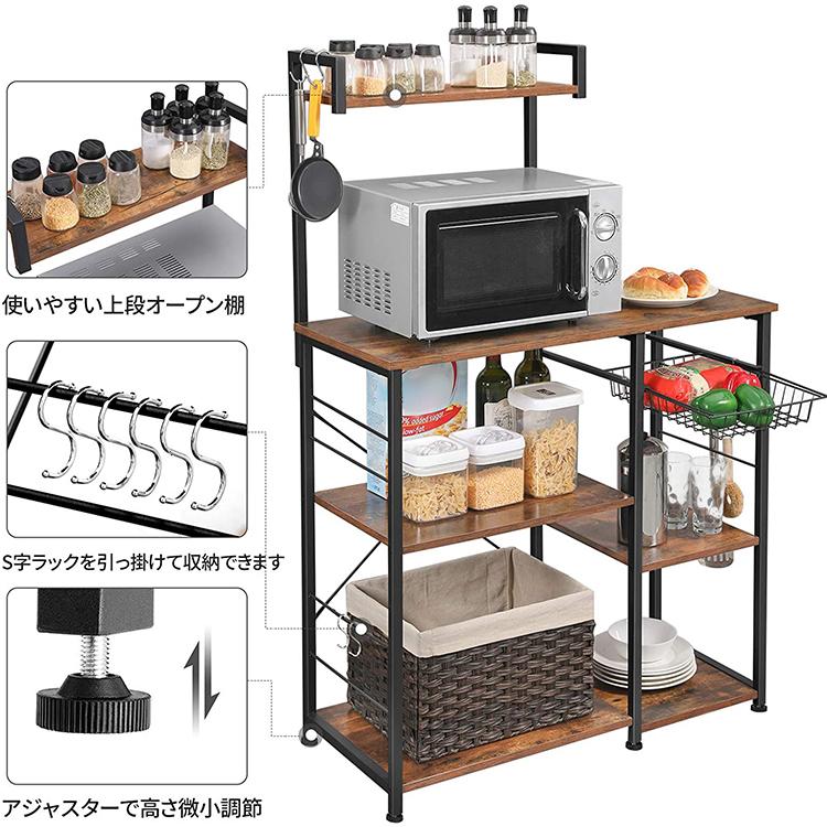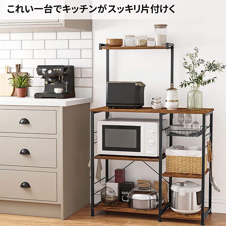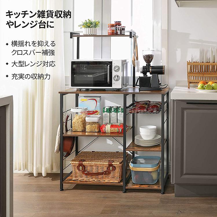 [B級品]VASAGLE キッチンラックレンジラックレンジ台 キッチンワゴン レンジボード キッチン収納 6個S字ラックを付き 全体耐荷重80kg 大型レンジ対応