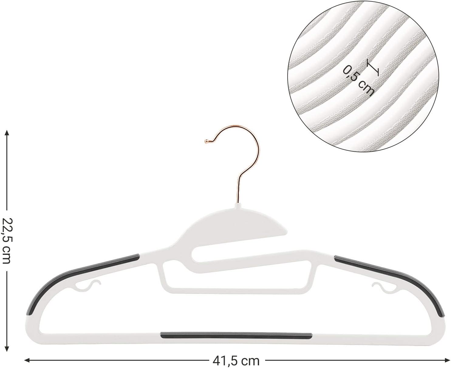 [B級品]SONGMICSハンガー かたくずれ防止 tシャツハンガー すべらない 洗濯収納兼用 襟を守る 360°回転 省スペース スリム プラスチック 首回りが伸びない 多機能 ホワイト+グレー CRP043W01 1本単位